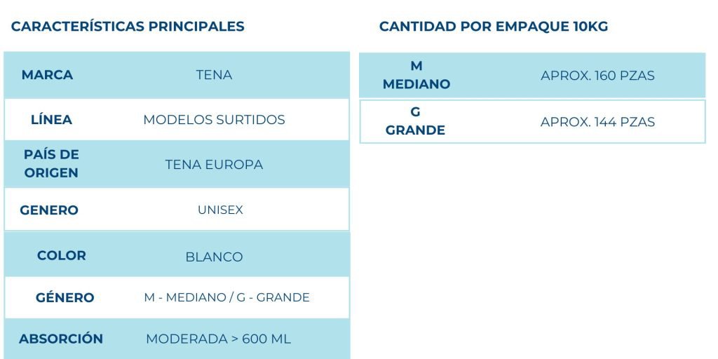 Pañales de importación, Tena Europa, seleccionados de diferentes modelos Tena, revisados para garantizar buen desempeño y comodidad. Una opción accesible y confiable, con absorción moderada para el uso diario.